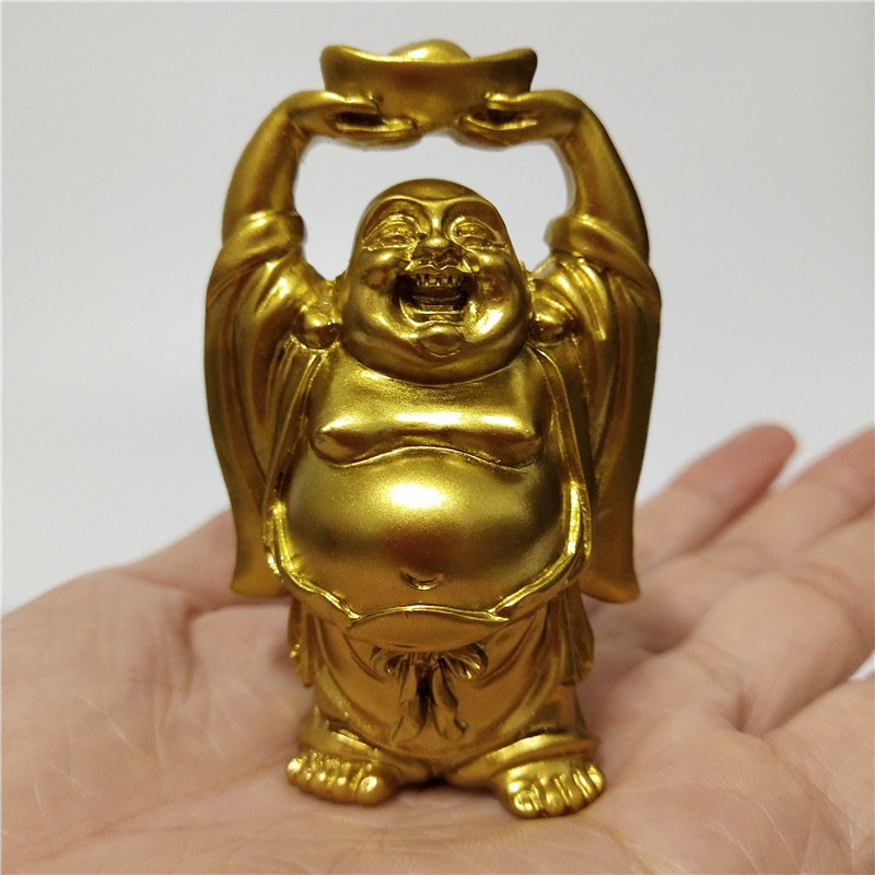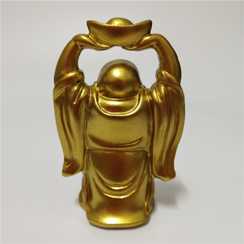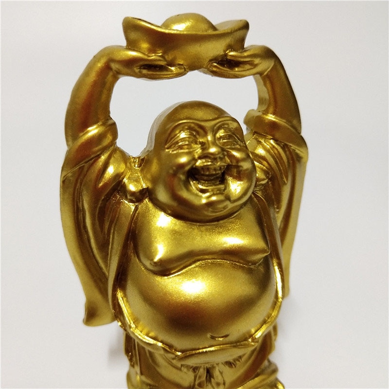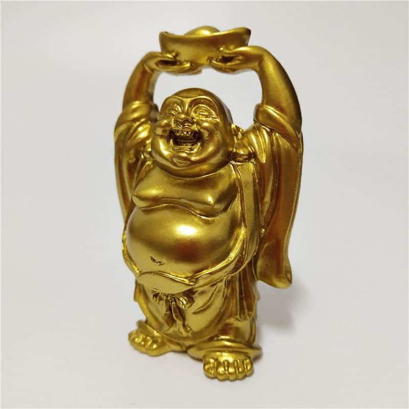 Maitreya Buddha with gold ingots or coins placed in the South East area of your house or living room will attract positive wealth energy.